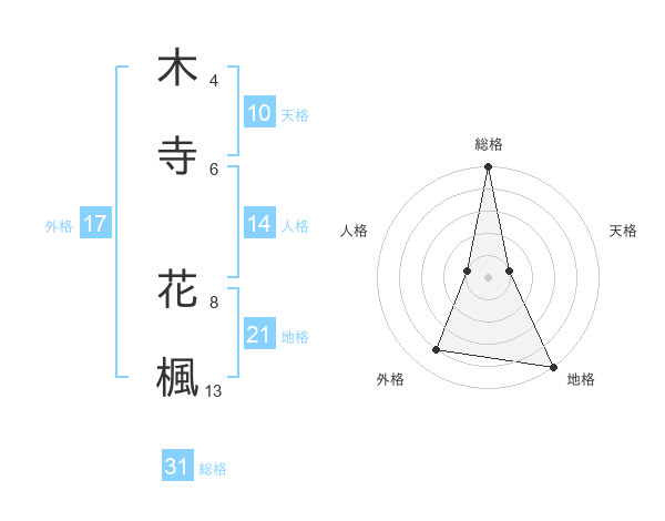 木寺 花楓さんの総格は31画の5点!