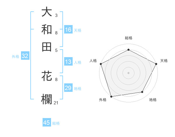 大和田 花欄さんの総格は45画の4点!