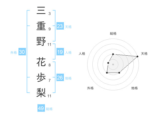 三重野 花歩梨さんを姓名の画数から五運を鑑定