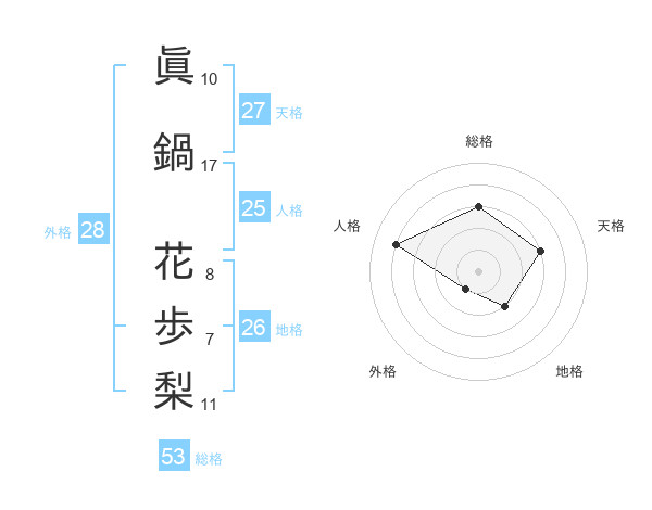 眞鍋 花歩梨さんの総格は53画の3点!