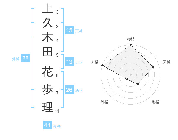 上久木田 花歩理さんの天格は15画の4点!