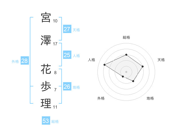 宮澤 花歩理さんを姓名の画数から五運を鑑定