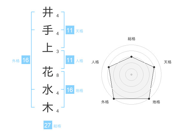 井手上 花水木さんを姓名の画数から五運を鑑定