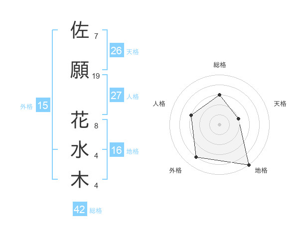 佐願 花水木さんを姓名の画数から五運を鑑定