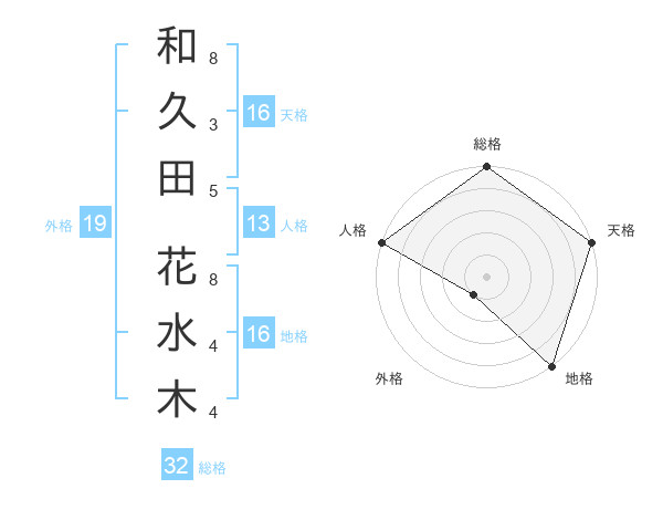 和久田 花水木さんを姓名の画数から五運を鑑定