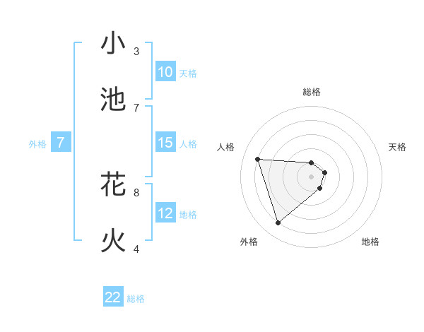 小池 花火さんの総格は22画の1点!