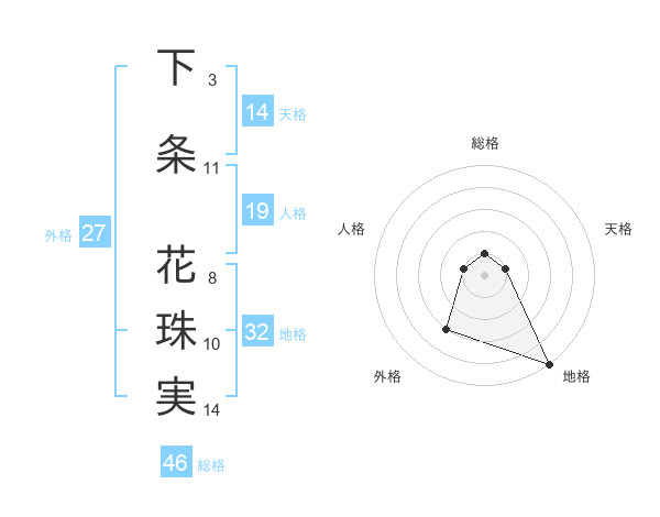 下条 花珠実さんを姓名の画数から五運を鑑定