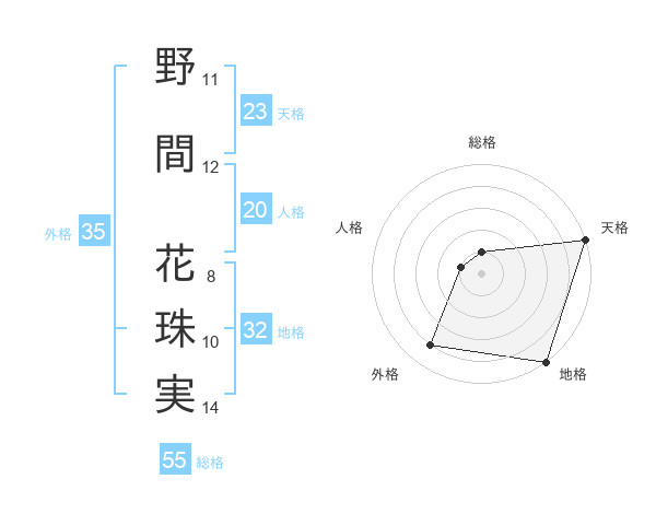 野間 花珠実さんを姓名の画数から五運を鑑定