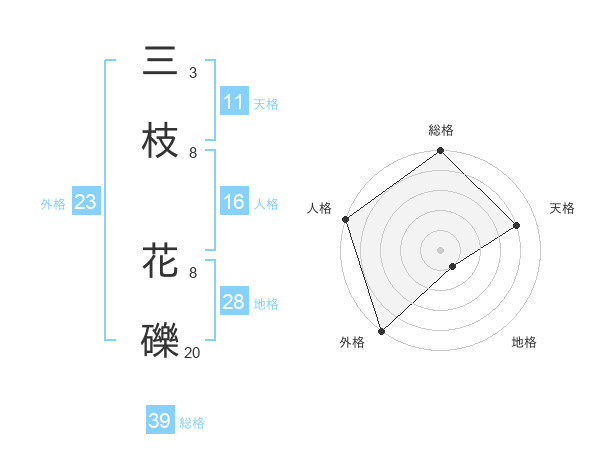 三枝 花礫さんの外格は23画の5点!
