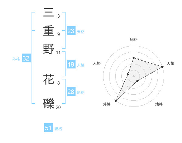 三重野 花礫さんを姓名の画数から五運を鑑定
