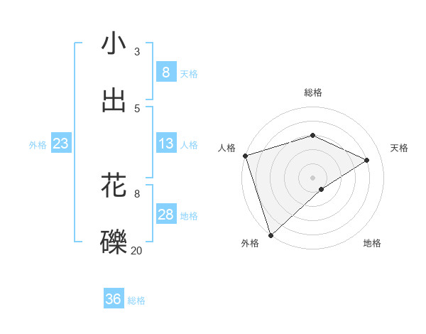 小出 花礫さんの天格は8画の4点!