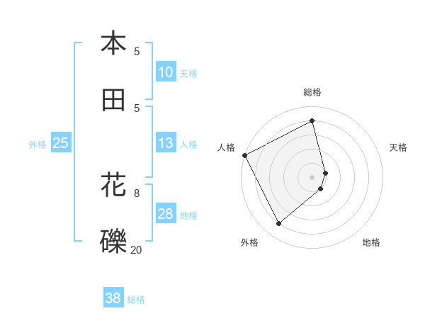 本サイトの鑑定結果の正当性は保証しません。鑑定結果は参考程度にお読みください。実際の名づけにご利用される場合は、姓名判断についてご自身でよくお調べください。