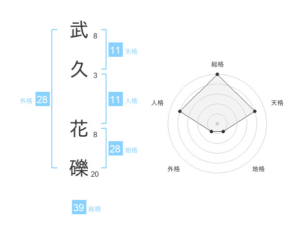 武久 花礫さんの総格は39画の5点!