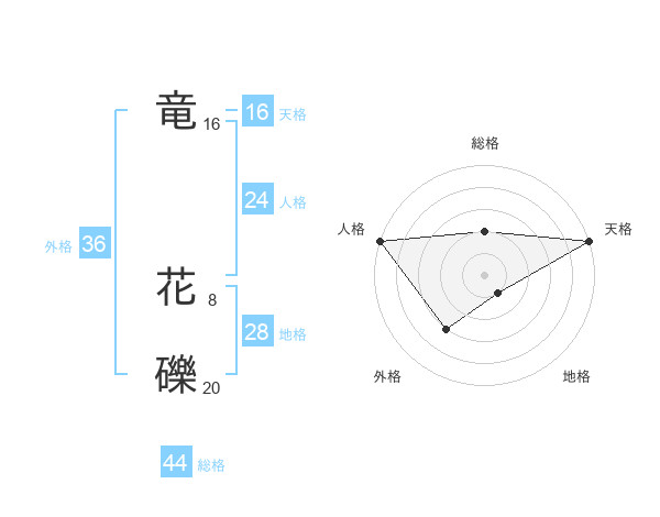 竜 花礫さんの総格は44画の2点!