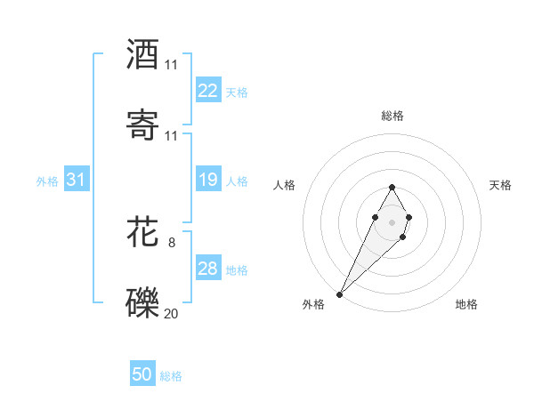 酒寄 花礫さんの総格は50画の2点!