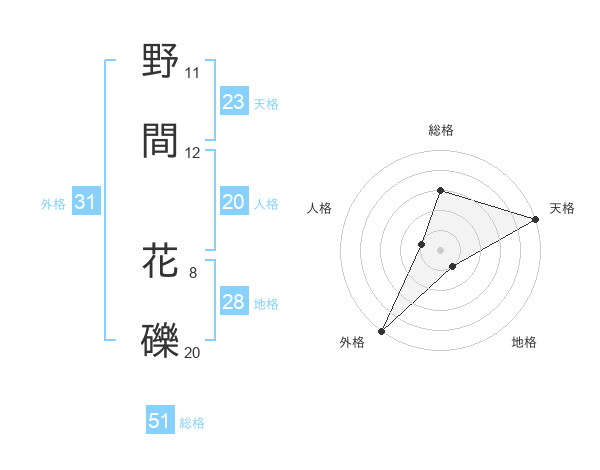 野間 花礫さんの外格は31画の5点