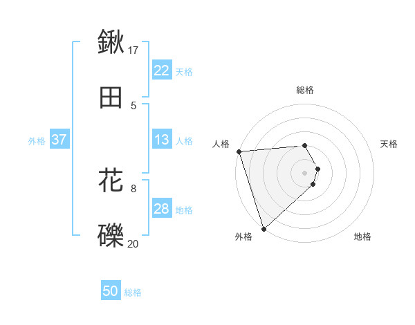 鍬田 花礫さんの外格は37画の5点!