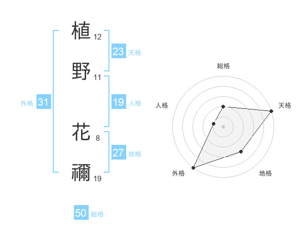 植野 花禰さんの総格は50画の2点!