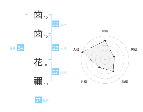歯歯 花禰さんの外格は34画の2点!