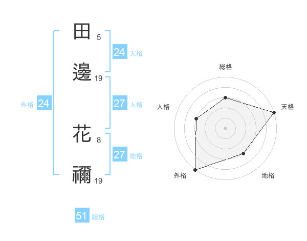 田邊 花禰さんを姓名の画数から五運を鑑定