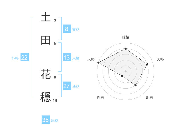 土田 花穏さんの総格は35画の4点!
