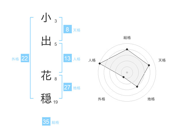 小出 花穏さんの総格は35画の4点!