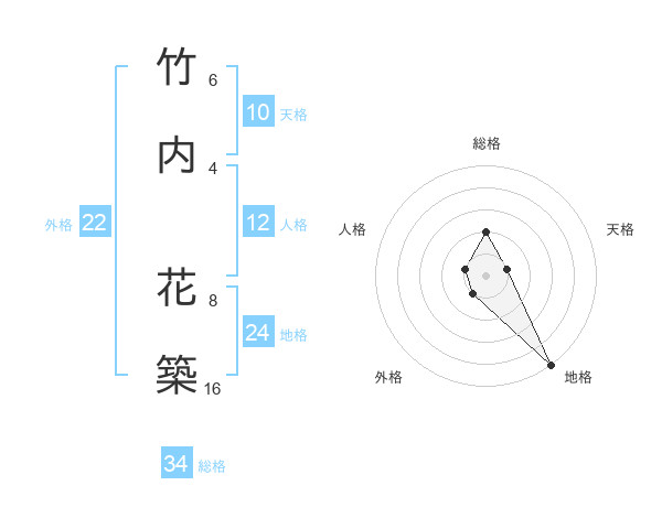 竹内 花築さんの総格は34画の2点!