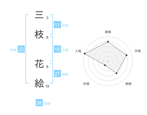 三枝 花絵さんを姓名の画数から五運を鑑定