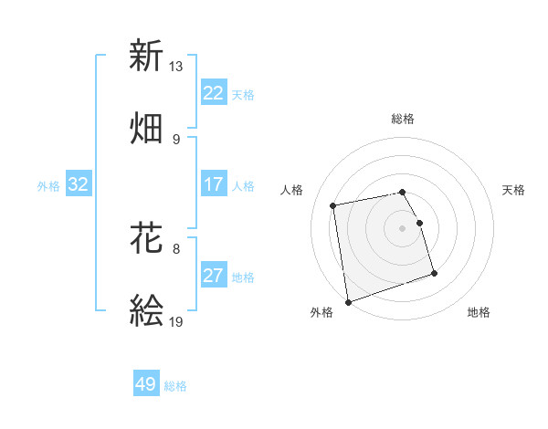 新畑 花絵さんを姓名の画数から五運を鑑定
