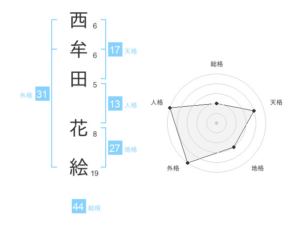 西牟田 花絵さんを姓名の画数から五運を鑑定