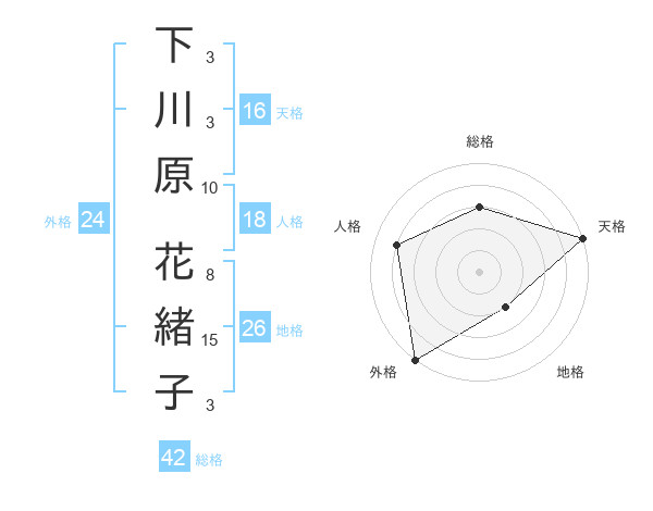 下川原 花緒子さんの総格は42画の3点!