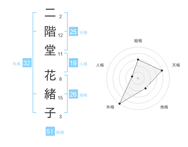 二階堂 花緒子さんを姓名の画数から五運を鑑定