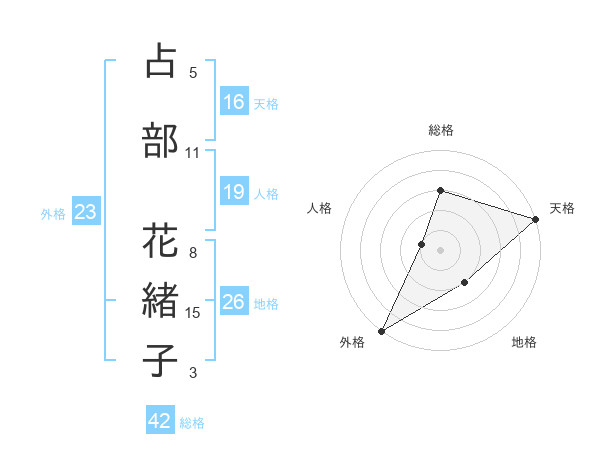 占部 花緒子さんを姓名の画数から五運を鑑定
