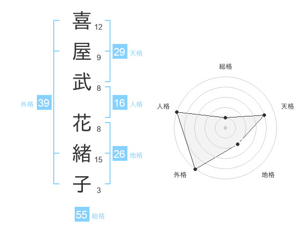 喜屋武 花緒子さんを姓名の画数から五運を鑑定