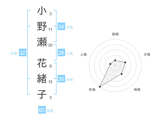 小野瀬 花緒子さんを姓名の画数から五運を鑑定