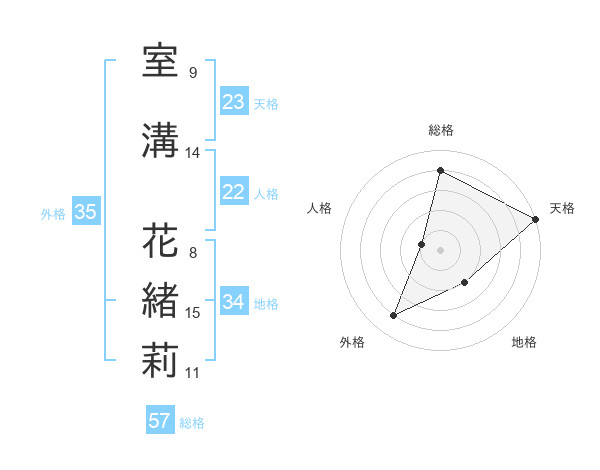 室溝 花緒莉さんの天格は23画の5点!
