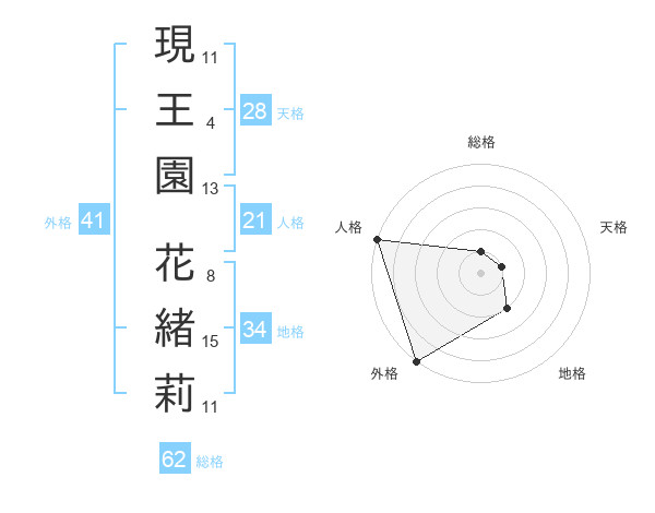 現王園 花緒莉さんを姓名の画数から五運を鑑定