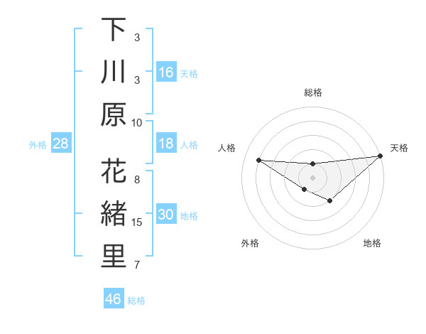 下川原 花緒里さんを姓名の画数から五運を鑑定