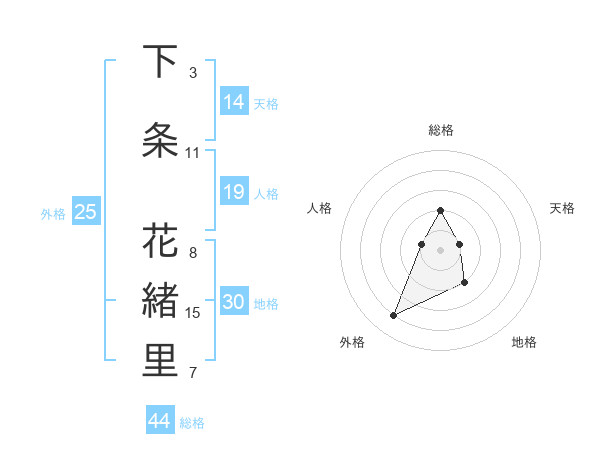下条 花緒里さんを姓名の画数から五運を鑑定