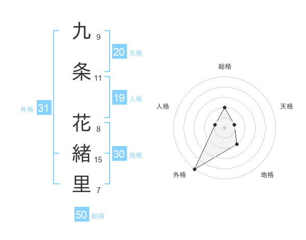 九条 花緒里さんを姓名の画数から五運を鑑定
