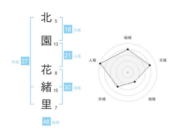 北園 花緒里さんを姓名の画数から五運を鑑定
