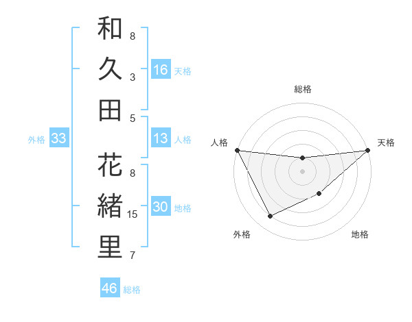 和久田 花緒里さんの天格は16画の5点