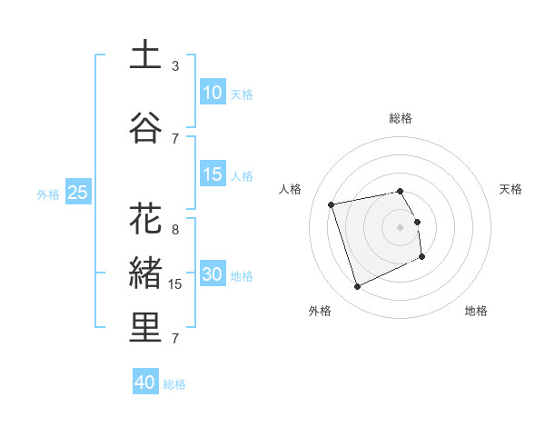 土谷 花緒里さんを姓名の画数から五運を鑑定