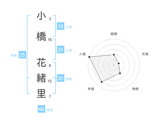 小橋 花緒里さんの天格は19画の1点!