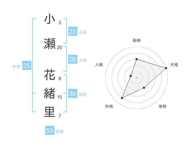 小瀬 花緒里さんの総格は53画の3点