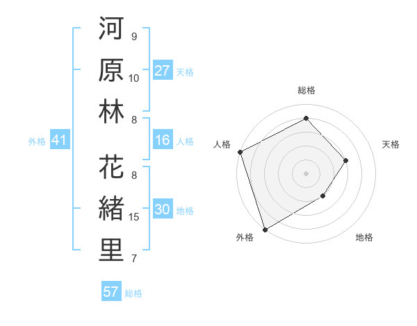 河原林 花緒里さんを姓名の画数から五運を鑑定