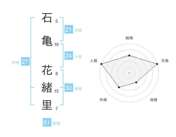 石亀 花緒里さんを姓名の画数から五運を鑑定