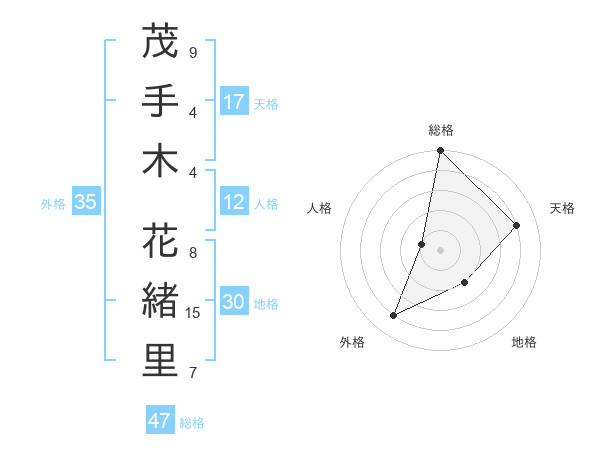 茂手木 花緒里さんを姓名の画数から五運を鑑定