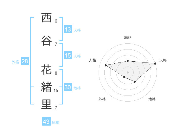 西谷 花緒里さんを姓名の画数から五運を鑑定