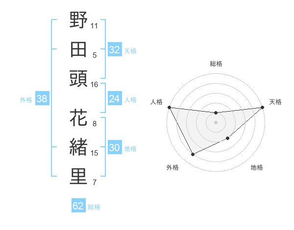 野田頭 花緒里さんを姓名の画数から五運を鑑定